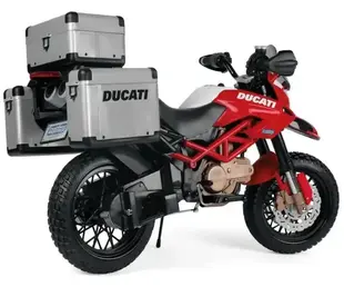 Quando i bambini crescono, arrivano le vere protagoniste della collezione. La Hypermotard turistica riprende il design della sorella maggiore, con telaio finto a traliccio e tre valigie apribili, perfette per simulare viaggi ed esplorazioni. Stessa fascia di prezzo – circa 489 euro – per la Desmosedici GP, replica in miniatura della moto ufficiale di MotoGP, con manubrio basso, decal sponsor e addirittura un altoparlante che riproduce il rombo del motore. Entrambi i modelli possono essere usati con rotelle di supporto, per avvicinarsi alle due ruote in totale sicurezza.