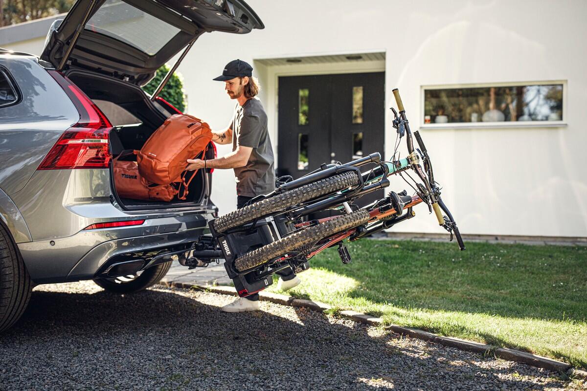 Thule prosegue nell’ampliamento delle proprie proposte per ciclisti. Dopo il carrellino Courier è ora la vota di diversi prodotti pensati per chi desidera affrontare la bella stagione in sella, con alcuni pensati appositamente per i possessori di bici a pedalata assistita. La news più interessante è l’EasyFold XT, un portabici da gancio traino tradizionale o con sistema Fix4bike disponibile nelle varianti da 2 o 3 bici. Un modello semplice da installare, compatto e leggero (23 kg) che può essere chiuso in modo facile per riporlo nel box senza occupare troppo spazio quando non utilizzato. Una volta montato, permette di caricare le e-bike in modo rapido e sicuro grazie ai bracci di fissaggio rimovibili provvisti di pomelli per il serraggio, ai poggiaruote distanziati, alle cinghie fermaruota regolabili con fibbie a cricchetto e alle protezioni in gomma morbida per proteggere i cerchi. La portata è di 60 kg, quindi sufficiente per il trasporto anche di tre e-bike senza le batterie, che si consiglia sempre di custodire separatamente all’interno dell’auto. Comoda la funzione basculante a pedale che consente di reclinare il piano di carico per agevolare l’apertura del portellone dell’auto senza rimuovere le e-bike. Il listino del Thule EasyFold XT parte da 1.094 euro per arrivare a 1.300 euro e comprende una borsa per proteggere il portabici durante il rimessaggio. Tra le opzioni disponibili citiamo la rampa per semplificare il carico delle e-bike. Altre due novità utili sono il RoundTrip Bike Duel, un borsone con scomparti modulabili e tasche in tela cerata per riporre indumenti e altre attrezzature delle e-bike, e Rail 18L Backpack. Si tratta di uno zaino studiato per gli utenti di MTB elettriche e comprensivo di uno spazio per riporre in sicurezza la batterie di scorta, di una sacca idrica da 2,5 litri e di una protezione per la schiena rimovibile.