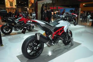 È il motore bicilindrico Testastretta 11° in versione Euro 4 da 937 cm3 e 113 CV la vera novità che caratterizza tutta la gamma delle Hypermotard: la “base”, la SP e la Hyperstrada. Cambia il terminale di scarico, rimane invariato il ricco “pacchetto elettronico”: tutta la famiglia Hypermotard è dotata di Ducati Safety Pack che prevede ABS a 3 livelli, Ducati Traction Control a 8 livelli e 3 Riding Mode. Ogni Riding Mode ha settaggi elettronici differenti per dare tre differenti anime all’Hypermotard. Nuove le frecce a led inserite nei paramani e il cruscotto LCD ha ora l’indicatore di marcia. A livello di sospensioni la Hypermotard sfoggia una forcella Kayaba a steli rovesciati da 43 mm di diametro con escursione di 170 mm e un ammortizzatore Sachs regolabile nel freno idraulico che offre 150 mm di escursione ruota.
