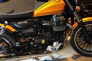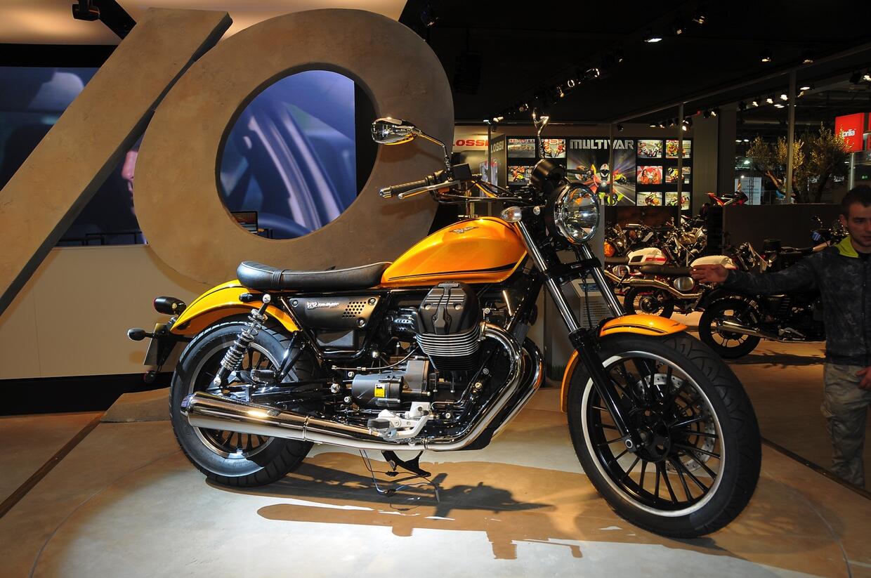 Debutta al salone milanese la V9 Roamer, custom di media cilindrata che deve raccogliere il testimone lasciato dalla Nevada, in produzione da oltre 25 anni. Questo nuovo modello è spinto da un'evoluzione del classico bicilindrico Guzzi “serie piccola” ed è dotato di tutta l'elettronica che serve