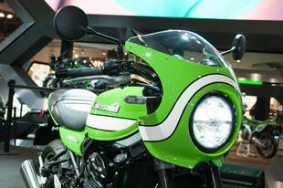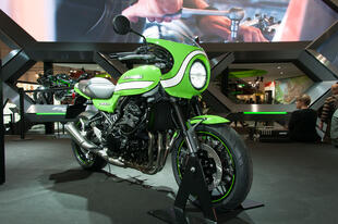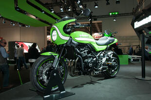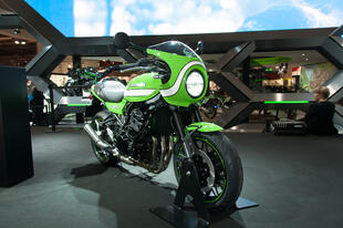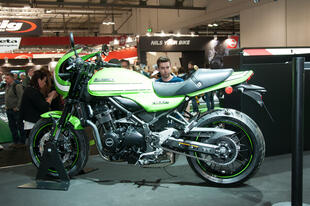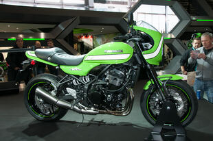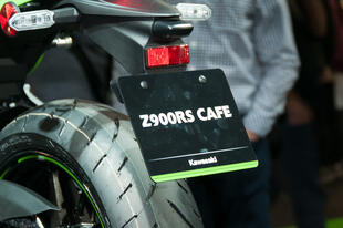 Allo stand Kawasaki al Tokyo Motor Show non c’era: la Z 900RS Cafe, versione cafè racer della Z 900RS, la nuda che richiama i fasti della mitica Z1 Super Four 900 del 1972, è apparsa in tutto il suo fascino in esclusiva a EICMA 2017. Poche, ma evidenti, le differenze tra la nuova nata di Kawasaki e la versione "base". La Z 900RS Cafe ha innanzitutto colori e grafiche speciali, che richiamano le livree delle Kawa impegnate nei campionati “Endurance” degli anni 70 e 80: un bel verde lime con una striscia bianca che corre dal cupolino, attraversa il bel serbatoio a goccia da 17 litri e arriva al codino, dalle dimensioni molto contenute. Abbiamo poi un manubrio a piega bassa per adottare una guida più sportiva e caricata in avanti e cambiano le dimensioni complessive: rispetto alla RS "base", la Cafe è più stretta di 20 mm (da 865 a 845 mm) e più alta di 40 mm, per via del cupolino (si passa da 1150 a 1190 mm); cambia anche l’altezza della sella, che si abbassa da 835 a 820 mm: quella della Cafe è stata disegnata ad hoc per questo modello, offre meno spazio al passeggero che ha a disposizione solo la cinghia per aggrapparsi. Cambia anche il peso, seppure di poco: la Cafe pesa un 1 kg in più: 216 kg in ordine di marcia. Per il resto i due modelli sono uguali: il motore è sempre derivato da quello della supernaked Z 900, il quattro cilindri in linea da 948 cm3 raffreddato a liquido -rivisto (i cavalli passano da 125 a 111) per adattarlo allo stile della nuova nata- che promette una robusta erogazione della potenza ai regimi medio-bassi (la coppia massima di 98,5 Nm si raggiunge a 6500 giri). Anche la ciclistica è in comune, con il telaio a traliccio in tubi d’acciaio, la forcella a steli rovesciati da 41 mm di diametro e i potenti dischi freno da 300 mm all’anteriore con pinze freno monoblocco ad attacco radiale. Completano la dotazione ABS di serie, controllo di trazione con due livelli e disinseribile, le frecce full led e i cerchi dal design classico.