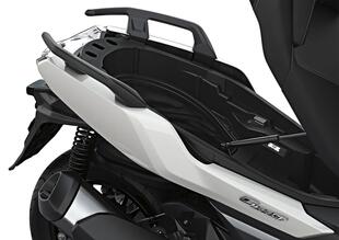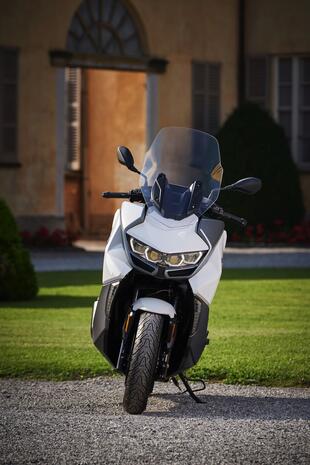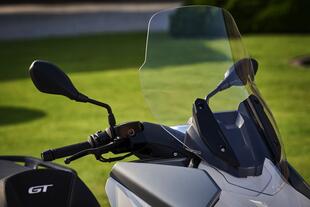 Dopo il C 400 X, presentato lo scorso EICMA e atteso dai concessionari la prossima primavera a causa di qualche ritardo produttivo, BMW raddoppia l’offerta scooter di fascia media presentando il nuovo C 400 GT, versione “da viaggio” del più aggressivo X. Lo scooter presenta lo stesso motore del fratellino, un classico motore monocilindrico di 350 cm3 con distribuzione a quattro valvole, raffreddamento a liquido per una potenza massima di 34 CV a 7500 giri. Il motore è montato con il cilindro disposto in posizione orizzontale, in modo da abbassare il baricentro, migliorando la maneggevolezza e garantendo una buona abitabilità. Un contralbero di bilanciamento contribuisce a ridurre le vibrazioni del motore, mentre la trasmissione vede al lavoro un classico variatore con finale a cinghia. Quanto alla ciclistica, lo scooter BMW è dotato di telaio tubolare in acciaio, forcella con steli da 35 mm di diametro e al posteriore due ammortizzatori regolabili nel precarico. L’impianto frenante dotato di ABS vede al lavoro una coppia di dischi da 265 mm all’anteriore con pinze flottanti a quattro pistoncini e uno al posteriore delle stesse dimensioni. Sul fronte della sicurezza, poi, abbiamo il controllo di trazione di serie e potenti fari a led. La strumentazione comprende uno schermo TFT da 6,5 pollici a colori, e può disporre del BMW Motorrad Multi-Controller per collegare lo smartphone allo scooter permettendo così di utilizzare il telefono e ascoltare musica durante il viaggio, senza distrarsi. Con il fratellino X, il GT condivide anche il sottosella che grazie al sistema flexcase consente di caricare (da fermo) un casco integrale e un jet. La capacità di carico si completa anche con due vani portaoggetti nel retroscudo. L’estetica è da vera GT, con un parabrezza dalla forma particolare studiato per offrire la maggiore protezione possibile da vento e acqua.