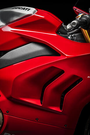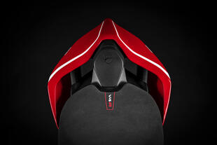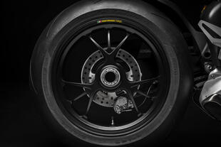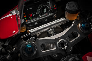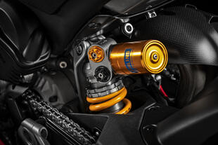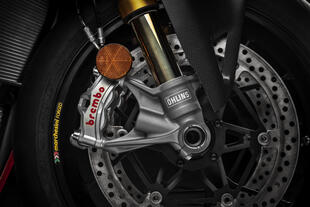 Tutto Öhlins il reparto sospensioni, con forcella NPX 25-30 pressurizzata, monoammortizzatore TTX 36 e ammortizzatore di sterzo, tutti a regolazione manuale, mentre l’impianto frenante sfoggia pinze monoblocco Stylema. Ricchissimo il pacchetto elettronico, gestito dalla piattaforma inerziale IMU a 6 assi che sovraintende a tutti i controlli già presenti sulla Panigale V4 di serie, arricchiti sulla R dal Ducati Power Launch, Pit Limiter e Lap Timer Evo, dedicati esclusivamente all’uso in pista. Tutte le funzioni, le regolazioni e i settaggi dell’elettronica sono visualizzati sul cruscotto digitale TFT con schermo da 5 pollici.