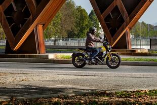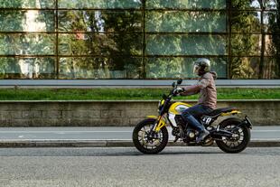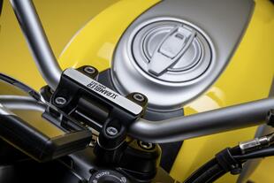 La linea e i “tratti somatici” delle Scrambler non cambiano ma è nuovo il serbatoio in acciaio dotato di cover in plastica intercambiabili e sono inedite anche le cover di radiatore e telaio, realizzate in alluminio. Ma le novità più interessanti sono tecniche: il telaio a traliccio è stato ridisegnato e alleggerito ed ora ha il telaietto posteriore imbullonato, mentre il nuovo forcellone è fuso in alluminio. Cura “dimagrante” anche per il Desmodue da 803 cm3 che conferma le prestazioni (73 CV a 8.250 giri) ma grazie ad una nuova frizione più compatta e cover della cinghia di distribuzione in plastica alleggerite (400 gr. in meno) fa segnare sulla bilancia un risparmio di 2,5 kg; il peso della Scrambler Icon scende così a 170 kg a secco. Invariate anche le misure delle ruote, da 18” all’anteriore e da 17” al posteriore ma su Icon e Full Throttle ci sono nuovi cerchi in alluminio a 14 razze. Confermate invece le sospensioni marchiate Kayaba, con forcella “fissa” con steli da 41 mm e monoammortizzatore regolabile nel precarico molla. Immutato anche l’impianto frenante Brembo con un singolo disco di ben 330 mm di diametro e pinza radiale a quattro pistoncini, servito dall’ABS con funzione cornering.