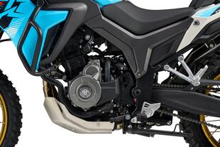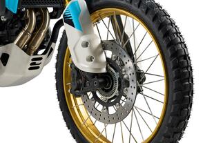 La configurazione con cerchi a raggi tubeless 21”-18” e pneumatici tassellati conferma la vocazione fuoristrada del modello, che adotta anche sospensioni a lunga escursione. La forcella a steli rovesciati di 41 mm di diametro offre 200 mm di corsa, mentre il monoammortizzatore posteriore collegato al forcellone tramite leveraggi progressivi ne concede 230 mm. L’impianto frenante vede all’anteriore un disco flottante di 320 mm di diametro, sul quale lavora una pinza J.Juan a quattro pistoncini. L’ABS Bosch è disattivabile totalmente o solo al posteriore. La sella si trova a 86 cm dal terreno, mentre il peso dichiarato in ordine di marcia è di 198 kg.