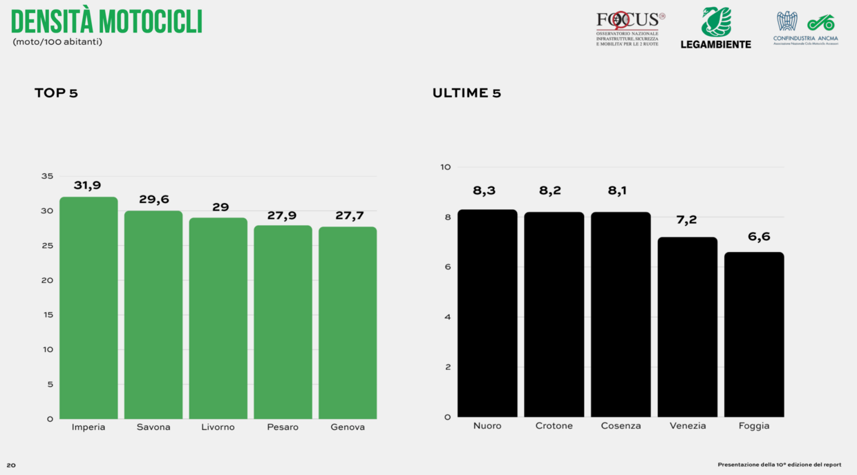 Realizzato da Confindustria ANCMA e Legambiente in collaborazione con Ambiente Italia, il rapporto Focus2R offre una fotografia completa della mobilità urbana su due ruote in Italia, analizzando politiche locali, infrastrutture e strumenti di incentivazione adottati nei capoluoghi di provincia. Il report 2025, basato su un questionario inviato a 107 Comuni, ha registrato un’ampia partecipazione: 94 amministrazioni hanno fornito dati aggiornati al 2024, permettendo di analizzare sette ambiti chiave, tra cui accessibilità urbana, sicurezza stradale, sharing mobility e parcheggi. Spoiler: non sono buone notizie…