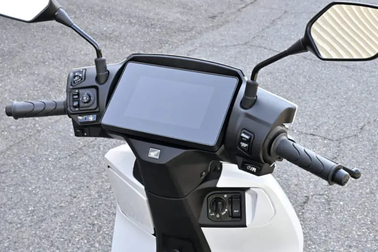 La vera sorpresa è però nascosta nel cruscotto. Il CUV e: è infatti il primo modello a montare la nuova piattaforma Honda RoadSync Duo, capace di visualizzare l’intera mappa navigabile direttamente sul display TFT da 7”. Collegando lo smartphone, è possibile ricevere indicazioni turn-by-turn e perfino suggerimenti di ricarica: se la batteria è in esaurimento, il sistema propone la stazione più vicina. Anche le grafiche del display sono curate e perfino l’avviso di cavalletto laterale abbassato è animato con illustrazioni dedicate…