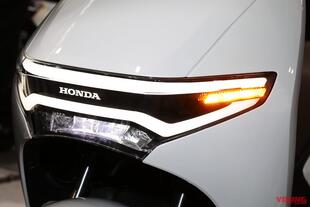 Esteticamente, il CUV e: ha una linea snella, ma inedita rispetto all’EM1 e:. Il faro anteriore e il gruppo ottico posteriore hanno una firma luminosa distintiva, con logo Honda illuminato all’interno – una prima assoluta su un due ruote della Casa.