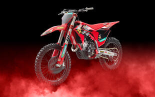 Tra i particolari di maggior rilievo la sella GUTS Factory e il manubrio Pro-Taper con una diversa curvatura e il pad abbinato, il silenziatore FMF Factory 4.1 RCT in titanio con finitura blu e fondello in carbonio, e ancora gli impianti freno e frisione a comando idraulico Brembo e il set di ruote Factory Racing con mozzi anodizzati neri e i cerchi Excel pure neri.