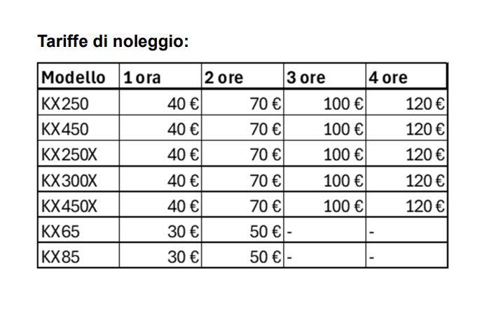 · 10 euro per bambini (con moto 65cc e 85cc)
