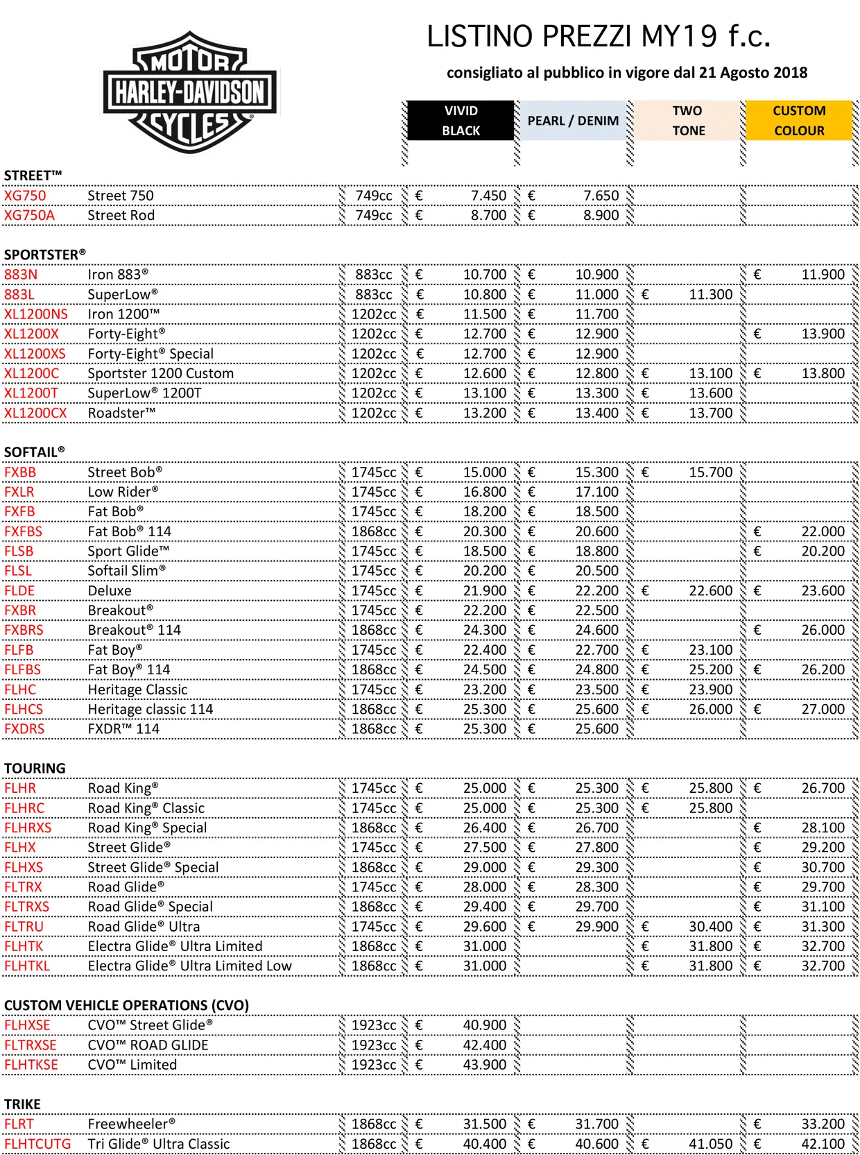 Vediamo infine il nuovo listino prezzi di Harley-Davidson, già in vigore con tutte le novità.