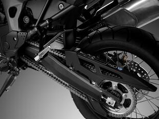 Il telaio a semi-doppia culla in acciaio è un buon compromesso per avere stabilità ad alta velocità, anche a pieno carico, e attitudine al fuoristrada, visto che coniuga resistenza alle sollecitazioni più dure a una buona flessibilità. La centralizzazione delle masse, ottenuta posizionando alcuni componenti come la batteria dietro la bancata dei cilindri, contribuisce ad abbassare il baricentro. La forcella rovesciata a perno avanzato Showa con steli da 45 mm è completamente regolabile e prevede l’attacco radiale per le pinze freno Nissin a 4 pistoncini; con le pinze lavorano due dischi flottanti da 310 mm di diametro con profilo a margherita. Dietro, anche il mono Showa è pluriregolabile, con registro idraulico del precarico molla che velocizza le operazioni di set-up. Infine, i cerchi a raggi sono da 21 pollici all’anteriore e da 18 al posteriore; è così possibile montare gomme tassellate in alternativa a quelli semi-stradali di primo equipaggiamento. Il peso a secco (modello standard) è di 208 kg, che diventano con il pieno di benzina (18,6 litri) 228 kg.