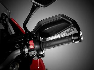 La strumentazione con display LCD a retroilluminazione negativa è disposta verticalmente come sulle moto da rally. I nuovi blocchetti elettrici presentano una perfetta ergonomia e sono montati su un nuovo manubrio in alluminio a sezione differenziata, montato su riser con supporti in gomma che riducono le vibrazioni. Una curiosità: la versione DCT ha il freno di stazionamento sulla ruota posteriore con comando sulla sinistra del manubrio e quattro livelli di forza frenante a seconda della pendenza (fino al 18% con due persone e a pieno carico). Quanto alla protezione dal vento, il parabrezza ha una feritoia centrale studiata per eliminare le turbolenze aerodinamiche, anche installando il parabrezza maggiorato (90 mm più alto e 30 mm più largo), mentre le feritoie ai lati del cruscotto deviano l’aria ai lati delle spalle e delle braccia del pilota. Per accogliere piloti di ogni taglia, la sella è regolabile in altezza su due posizioni (870 e 850 mm).