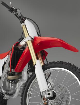 Honda HRC sta lavorando sodo per riportare rimanere ai vertici dell'off road, ecco la prima novità del 2015: la CRF 250 R che si rinnova sulle orme della versione 450. Ciclisticamente troviamo una nuova forcella ad aria Showa da 48 mm, il telaio è lo stesso della 450 a semi-doppio trave in alluminio di sesta generazione, la geometria dello sterzo, prevede un'inclinazione del cannotto di 27,23°, avancorsa di 116,7 mm e interasse di 1.489 mm. Cambia anche il disco anteriore: ora è a margherita da 260 mm . Per quanto riguarda il motore, la nuova 250 prende anche qui spunto dalla sorella maggiore e sfoggia il pulsante per la selezione della mappature del motore, il sistema EMSB (EMSB, Engine Mode Select Button) prevede tre differenti mappature: la prima è standard, la seconda favorisce un'accelerazione più fluida e la terza rende più aggressiva l'erogazione. Lo scarico doppio ha un diametro maggiorato e migliora la risposta dell'acceleratore a tutti i regimi con una maggiore reattività a quelli bassi e medi. Tutta nuova anche la grafica, ancora più aggressiva e ispirata alle Honda ufficiali dell'MXGP, inoltre l'equipaggiamento di serie offre gli pneumatici Dunlop MX52F/MX52 che completano le novità per il model year 2015.