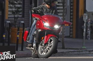 CTX 1300 - La maxi cruiser Honda è stata beccata durante un servizio fotografico promozionale. Equipaggiata con quello che sembra essere il V4 1300 della Pan European, questa nuova cruiser mostra misure generose e una linea in puro stile bagger. Pensata principalmente per il mercato USA potrebbe arrivare in futuro anche da noi