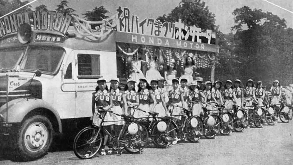 Come dimostra la foto storica della Nichigeki Dance Troupe (qui sopra), che sfilava con il Cub F in parata, questo motore era il primo passo per far salire sulle due ruote chiunque, molto prima che il nome Honda diventasse sinonimo di affidabilità e innovazione. La diffusione rapida e capillare del Cub F dimostra che, oltre a creare un ottimo prodotto, Fujisawa aveva colto l’importanza di portare quel prodotto direttamente nelle mani della gente.