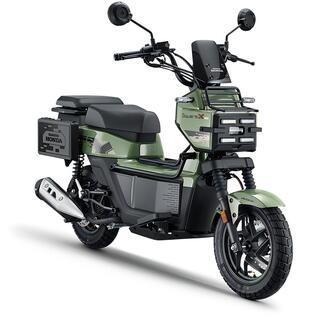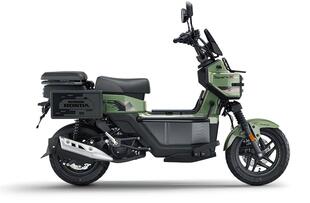 Dal punto di vista tecnico, il motore è un monocilindrico 4 tempi raffreddato ad aria, da 124 cm³, con distribuzione SOHC a due valvole. I dati dichiarati parlano di una potenza di 9,45 CV a 7.750 giri/min e coppia massima di 10 Nm a 5.750 giri/min. La ciclistica prevede ruote da 12 pollici all’anteriore e 10 al posteriore, con pneumatici a profilo semi-tassellato. La frenata è affidata a dischi singoli su entrambe le ruote, mentre al posteriore agisce una coppia di ammortizzatori regolabili nel precarico. Le dimensioni contenute – 178 cm di lunghezza, 74 cm di altezza sella – e il peso di 122 kg ne fanno un mezzo agile per l’uso urbano. La posizione di guida è rialzata, con pedane piatte e manubrio largo, in linea con l’uso “ibrido” che il look suggerisce: scooter cittadino, ma pronto per un weekend all’aria aperta. La capacità di carico e le soluzioni modulari, come la seduta ribaltabile, richiamano in parte lo spirito del vecchio Honda PS250, un altro scooter anticonvenzionale della casa.