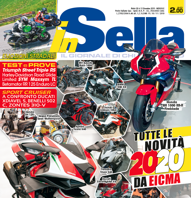 È anche quest’anno ormai sta finendo: il numero di dicembre di inSella è in edicola da qualche giorno, e, ovviamente, in questo fascicolo vi raccontiamo nel dettaglio tutte le novità che si sono viste al salone di Milano. Per voi ci sono 50 pagine in cui troverete tante belle moto reali da desiderare o addirittura comprare: questa in sintesi l’edizione 2019 di EICMA. I tanti appassionati che hanno affollato i padiglioni della fiera hanno potuto ammirare moto e scooter concreti, pronti a entrare in produzione, che nei prossimi mesi vedremo nelle vetrine dei concessionari. Persino i “prototipi” presentati dalle case erano praticamente definitivi. Tra questi, oltre alla splendida Bimota Tesi H2 ci hanno colpito in particolare l’Aprilia Tuono 660 e la Husqvarna 901 Norden crossover: tre moto che invitano a montare in sella e partire. Tanti anche i lettori che sono venuti a trovarci al nostro stand, dove hanno potuto ammirare la “fuoriserie” realizzata da Tony’s Toy su base Zero SR/F e la Dallara Stradale portata da veloce.it, il nuovo sito del nostro editore dedicato alla passione a due e quattro ruote.