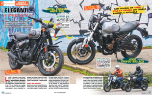 Ampio spazio anche per gli elettrici con la prova completa del BMW CE 04, il midiscooter di BMW ha linee insolite, finiture lussuose e dotazioni al top. Primo test invece per la crossover elettrica Energica Experia, che monta un nuovo motore elettrico più leggero, batterie con una diversa chimica per tempi di ricarica ridotti e un nuovo telaio più leggero.