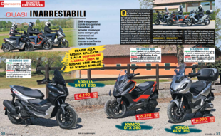 Non dimentichiamo però gli scooter che usiamo tutti i giorni: un modo di muoversi rapido, economico e rispettoso dell’ambiente, molto più che le auto. Chi è alla ricerca di un mezzo “da battaglia” per viaggiare anche in tangenziale, troverà molte idee nel servizio ai 150-300 usati. Se invece state pensando al “nuovo” trovate il confronto tra gli scooter crossover di media cilindrata, mezzi interessanti e divertenti, persino sullo sterrato. L’appuntamento quindi è in edicola, vi aspettiamo!