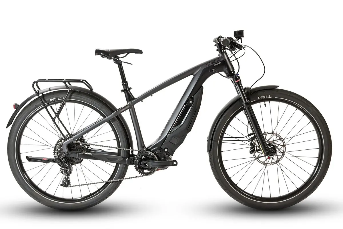 Il marchio di lusso di Atala ha esposto a Rimini le anteprime delle Speed Urban, modelli raffinati destinati anche alle escursioni fuori porta. Le versioni sono due, la C8.1 e la C9.1, accomunate dal telaio in carbonio con forcella rigida. La top di gamma ha kit Bosch Performance CX con doppie batterie da 500 Wh, cambio Shimano XT a 12 velocità, freni idraulici con pinze a 4 pistoncini e dischi da 203 mm. Costa 5.499 euro.