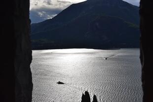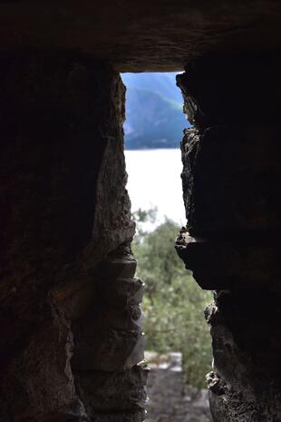 Ripresa la moto esattamente sopra Varenna si apre una bella lingua di tornanti che portano fino a Esino Lario. Qui, a poco meno di tre km di curve, si trova la deviazione per il Castello di Vezio una fortificazione di aspetto medievale (ma l’origine è antecedente) che serviva a proteggere la sottostante Varenna. Privatizzato il castello, o meglio, le sue rovine si possono visitare pagando un biglietto di 5 euro. Seguendo il vialetto d’ingresso si giunge al giardino degli ulivi, dove un sentiero conduce ai sotterranei del castello; qui, nel corso della prima guerra mondiale, correva la Linea difensiva Cadorna.