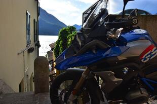Per questa capatina “lacustre” abbiamo utilizzato una BMW R 1200 GS Rallye, versione “off road” della maxi bavarese che prevede la stessa architettura di motore e telaio della base, ma ha una sella ridisegnata per offrire la massima libertà di movimento, parabrezza basso sportivo, cornice d'acciaio a protezione del radiatore, griglia protettiva per il faro anteriore, pedane da enduro e cerchi a raggi incrociati che, su richiesta (e senza sovrapprezzo), possono calzare di serie gomme tassellate. La moto, tra le stradine in salita e discesa del lecchese si è comportata alla grande, digerendo i tratti veloci con “facilità” da viaggiatrice (anche se il parabrezza basso non ripara del tutto) e muovendosi agile tra le curve alle basse velocità. Unico difetto? Se siete in due, la sella sportiva è un pochino corta, e si rischia di stare stretti. Ma se siete venuti fino a Varenna per godervi un tramonto da favola, probabilmente sarete in buona compagnia, e allora anche la sella stretta avrà il suo fascino…