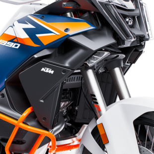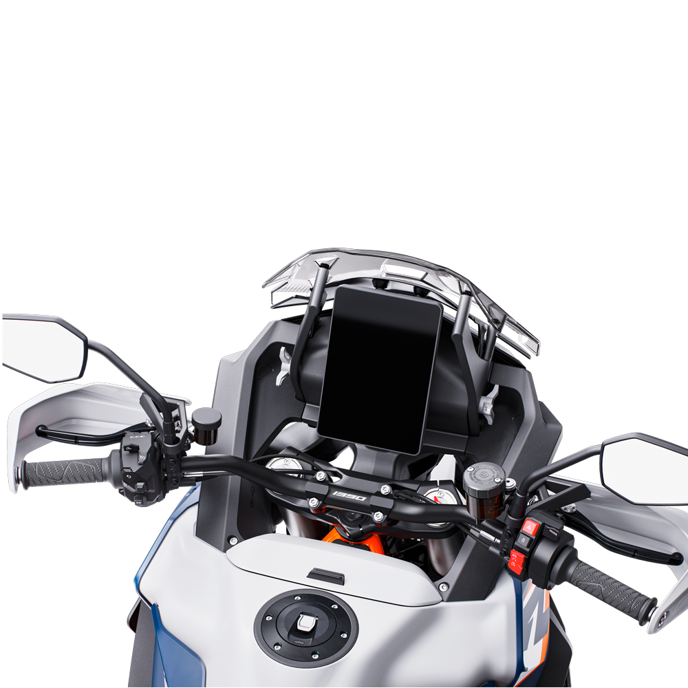 Nuove linee e una nuova grafica donano alla 1390 Super Adventure R 2026 un look più elegante e muscoloso. Sui fianchi compaiono nuovi spoiler e sagomature pensate per migliorare il comfort, sia nella guida su strada che in fuoristrada. All’anteriore domina il grosso gruppo ottico con luci full-LED e faretti supplementari con funzione cornering, che illuminano il centro della curva quando siete in piega.