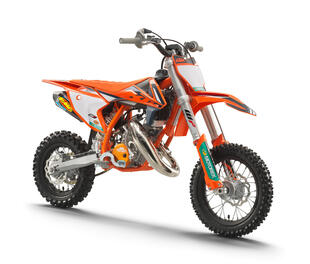 Nasce a partire dalla KTM 50 SX che si vende anche da noi, e ne conserva tutte le caratteristiche principali: motore a due tempi sdi 50 cm³ con l’ammissione controllata da lamelle, raffreddamento a liquido e frizione centrifuga, il telaio è monoculla sdoppiata in tubi e ci sono sospensioni WP XACT con tecnologia AER davanti e dietro; sono di produzione Formula i dischi freno a margherita di 160 mm Ø, uno davanti e uno dietro, e poi ci sono manubrio rastremato Neken, manopole ODI e cerchi in alluminio Quello che distingue la versione Factory è l’adozione di una lunga lista di componenti prelevati dal catalogo KTM Powerparts che la rendono ancora più raffinata. In particolare ci sono l’impianto di scarico FMF, i coperchi della frizione e dell’accensione in alluminio lavorati CNC, una corona più piccola che allunga il rapporto finale, sono stati rivisti la carburazione e la configurazione della frizione, ci sono pneumatici Dunlop Geomax MX53 e una sella speciale con maggiore grip che permette un maggiore controllo della moto.