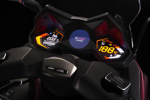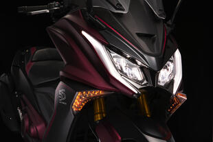 Lo stand di Kymco al Salone della moto di Milano ospitava una versione in edizione limitata di sole 550 unità dell’AK 550, creata per festeggiare i 55 anni della casa taiwanese. L'AK550 Limited Edition 55th Anniversary si distingue per le colorazioni speciali (nero metallizzato e rosso burgundy) e le eleganti decorazioni adesive. Non solo: questo particolare modello ha di serie l’ammortizzatore posteriore firmato Öhlins, con la possibilità di avere come optional lo scarico sviluppato appositamente da Akrapovic, a cui si aggiungono numerosi particolari esclusivi: le leve freno, il coperchio delle pompe freno e altri dettagli sono realizzati ad hoc in alluminio, mentre sul coprimanubrio c'è una placchetta identificativa del modello. Invariato il motore bicilindrico in linea di 550 cm3, capace di erogare 53,7 CV a 7500 giri, con una coppia massima di 55 Nm.