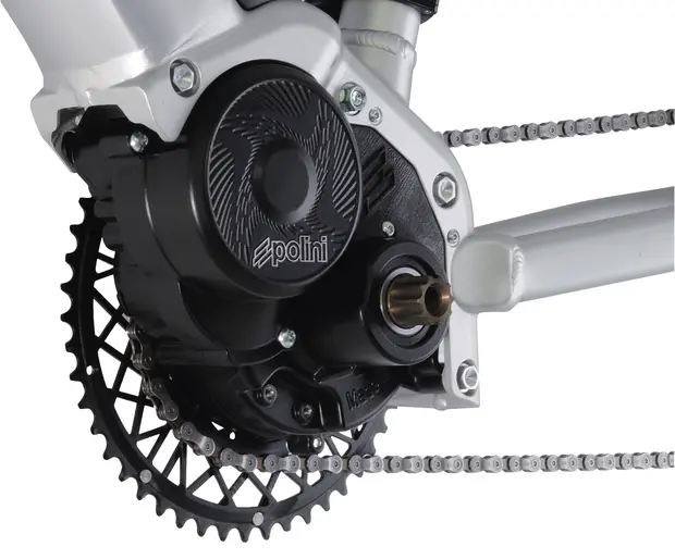 Il motore Polini E-P3 pesa 2.850 grammi, ha una coppia massima di 70 Nm e una potenza "omologata" di 250 watt (500 watt di picco), con un'autonomia massima (dichiarata) di 220 km. Potenza e coppia sono inoltre ottimizzabili con software specifici per regolare spunti e consumi di energia della batteria. Polini E-P3 dispone di sensore di coppia, sensore di velocità e sensore di frequenza di pedalata: i tre sensori sono gestiti da un sofisticato processore che in funzione dello stile di pedalata del ciclista offre un controllo dinamico a qualsiasi velocità si proceda. Infine, nel caso si debba camminare portando a mano la propria e-bike, E-P3 "spinge" la bici a 6 km/h tenendo premuto l'apposito tasto presente sul controller (montato sul manubrio).