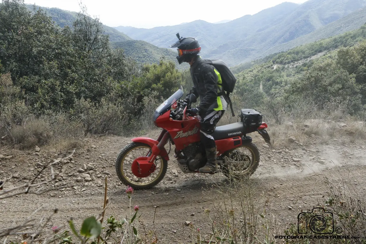 Il bosco si presenta invece in perfette condizioni, al di là delle più rosee aspettative: il terreno è ottimo, la prospettiva dell'alba imminente e della colazione vicina mi regalano uno slancio aggiuntivo. Sono intimamente convinto che anche la mia Dominator sia entusiasta: la “vecchietta” si comporta egregiamente: l'erogazione dolce del monocilindrico a 4 valvole radiali e il peso tutto sommato contenuto del mezzo, sono una benedizione in questi frangenti; soprattutto per chi come me ha scarsa tecnica e un fisico non allenato. Solo la risposta della forcella mi infastidisce a tratti: la trovo piuttosto cedevole in frenata e “rimbalzina” sulle pietre. Ma queste sono considerazioni che lasciano il tempo che trovano alla Hat: l'importante è fare chilometri, uomo e moto uniti nella buona e nella cattiva sorte!