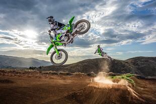 La KX450, molto vicina a quella ufficiale guidata da Romain Febvre nell’MXGP, è pressoché invariata. Motore monocilindrico a quattro tempi raffreddato a liquido con misure di alesaggio e corsa 96 x 62,1 mm che determinano una cilindrata effettiva di 449 cm³, distribuzione doppio albero a camme in testa a quattro valvole e alimentazione ad iniezione con un corpo farfalla lato di 44 mm Ø controllato da un sistema digitale DC-CDI, lubrificazione a carter semi secco. La frizione è multidisco in bagno d’olio e il cambio a cinque marce.
