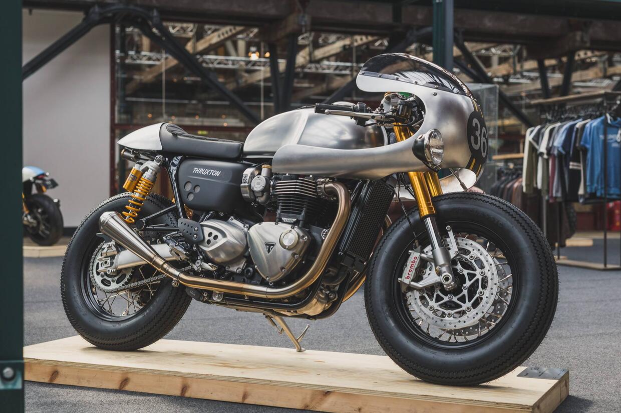 Il cuore del Bike Shed Even erano comunque loro, le special. Giocando in casa, gran parte della scena è stata rubata da preparatori britannici come Down& Out Café Racers che ha presentato in collaborazione con Barbour International una nuovissima Triumph Thruxton 1200 con semicarena e classiche coperture Firestone Deluxe Champion.