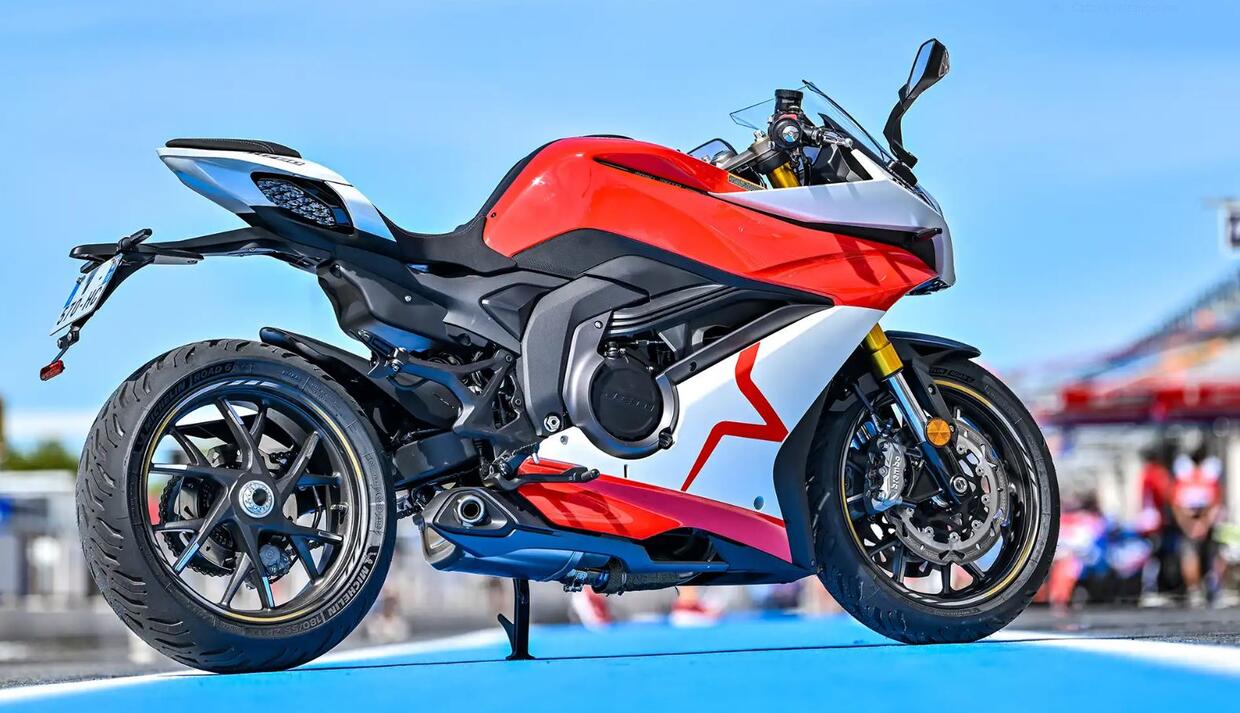 La dotazione è ricca per la categoria: display TFT da 5 pollici con connettività, avviamento keyless, luci full LED, presa USB, comandi retroilluminati e sensori di pressione degli pneumatici. Il motore è un bicilindrico parallelo di 730 cm³ capace di erogare 75 CV a 8.500 giri. È prevista anche una versione depotenziata da 48 CV, così da poter essere guidata con la patente A2. Il peso, però, è elevato: 217 kg in ordine di marcia, un valore ben superiore alla media delle sue dirette rivali europee.