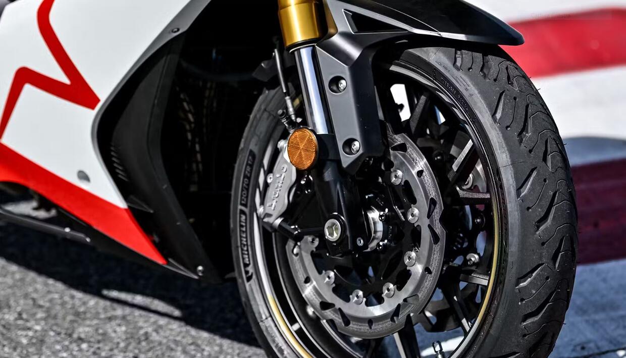 Di serie viene venduta in Europa con pneumatici Michelin Road 6, di estrazione più turistica che sportiva. Le pinze Brembo a quattro pistoncici sono ad attacco radiale.