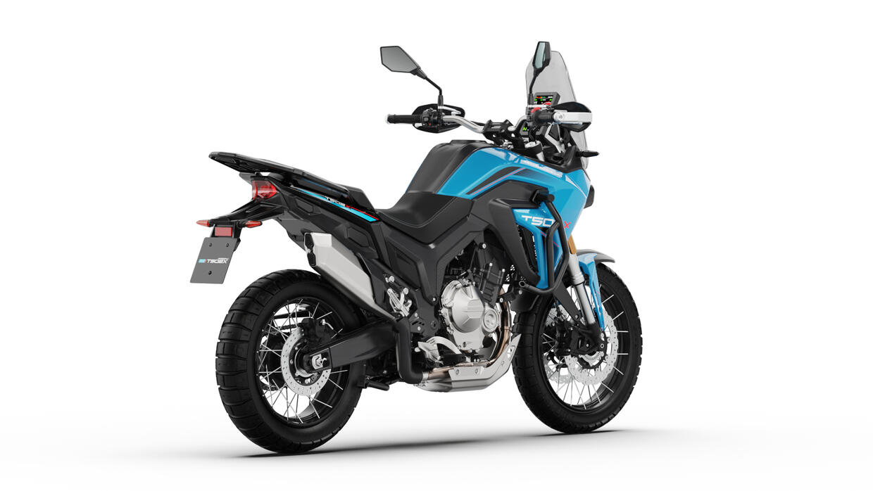 La T502X è dotata di due modalità di guida selezionabili dal manubrio: la Standard Mode mantiene attivo l’ABS Bosch su entrambe le ruote, mentre la Off-Road Mode disattiva l’ABS posteriore per una gestione più libera in fuoristrada.