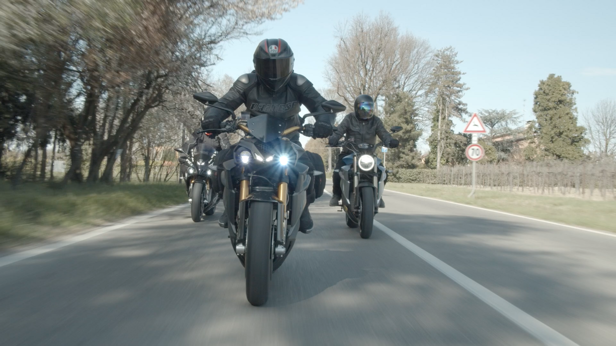 Su strada le tre Energica hanno un comportamento ovviamente diverso: graduale e “rotonda” la EsseEsse9, agile e intuitiva la Eva ribelle, efficace e veloce la Ego.