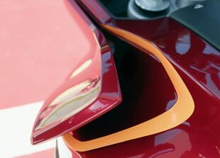 È una moto che colpisce al primo sguardo, il Centro Stile Piaggio guidato da Marco Lambri ha fatto un gran bel lavoro mixando ad arte innovazione e tradizione, quella che sarà la direzione del futuro intrapresa dal marchio. La carrozzeria – perdonate il termine obsoleto per una proposta così innovativa – è in un pezzo unico dal cupolino alla coda, sinuosa ma con un po’ di spigoli, e qua e là garbati richiami al passato: i più… grandicelli ritroveranno qualche accenno alla V65 Lario, alla colorazione delle indimenticabili V7 Sport (le prime) al cupolino della V35 Imola. Quel cupolino che cela una delle soluzioni inedite di questa V100: È la prima moto con aerodinamica attiva. Significa che cambia a seconda delle situazioni: sopra una certa velocità il parabrezza si alza (con ogni probabilità in maniera automatica) per offrire maggiore protezione, e allo stesso modo si aprono in avanti i due paramani trasformandosi in ali che garantiscono stabilità.