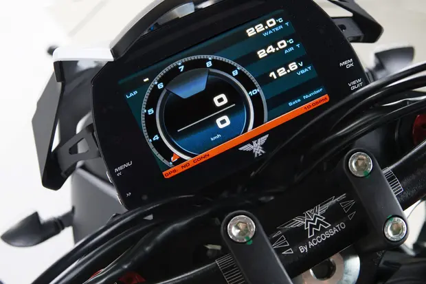 Nuova la strumentazione digitale, con un display TFT da 5” configurabile dal pilota; il doppio terminale di scarico è dell'italiana Zard