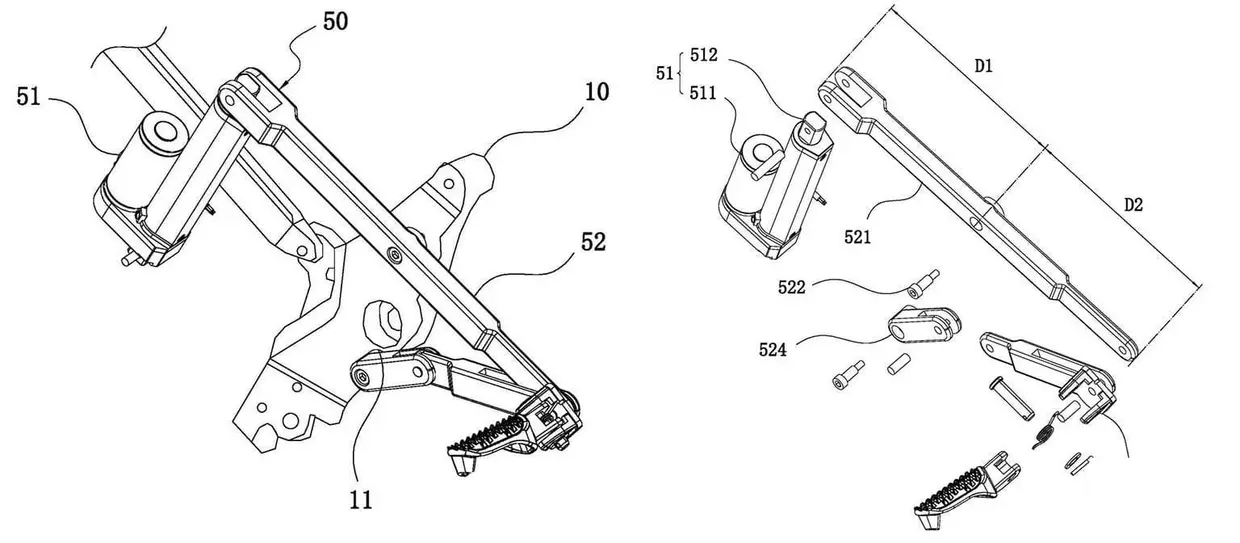 Il sistema è talmente semplice che viene spontaneo chiederselo. La risposta, forse, è nei recenti progressi delle trasmissioni semi-automatiche. Il brevetto non prevede infatti alcun meccanismo per far spostare anche leva del cambio e pedale del freno posteriore insieme alle pedane – aggiungerli complicherebbe notevolmente l’insieme. Ma se il cambio è gestito da pulsanti e frizione automatica, e il freno posteriore viene spostato sulla leva sinistra al manubrio, ecco che i comandi a pedale possono scomparire, lasciando campo libero a un sistema di regolazione attiva davvero semplice e, forse, finalmente possibile.