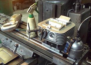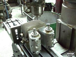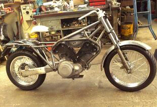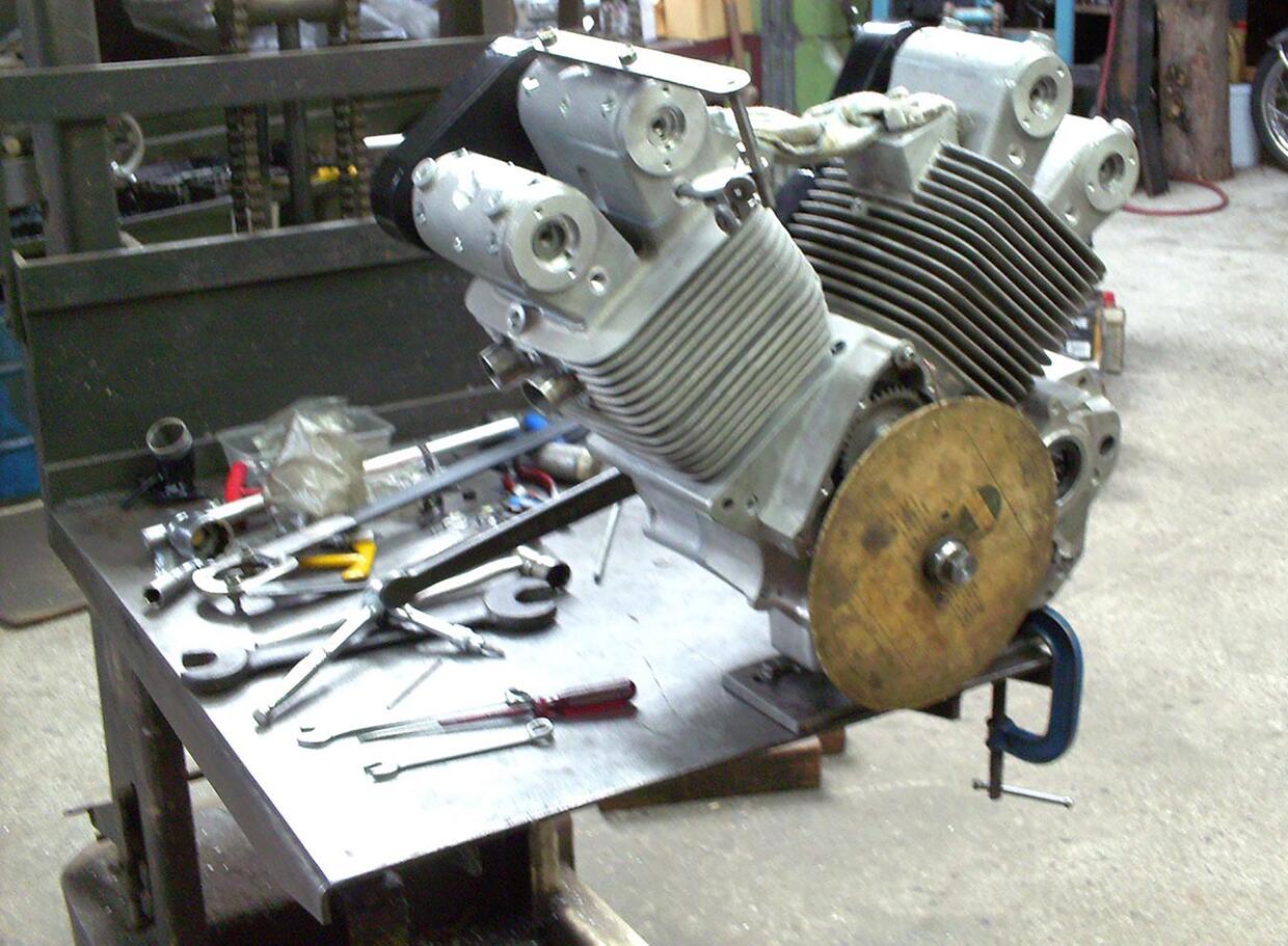 Il motore nasce utilizzando due cilindri originali BSA. Il basamento è un protetto di Doug