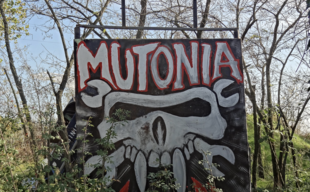 Mutonia è una comunità artistica sorta nei primi anni novanta a Santarcangelo di Romagna, grazie all'iniziativa della Mutoid Waste Company, collettivo inglese attivo nell'ambito della cultura squatter, punk e post-industriale. Invitati nel 1991 al festival teatrale locale, i Mutoidi si stabilirono in un'ex cava in disuso sul fiume Marecchia, iniziando a costruire sculture steampunk, molto simili, per intenderci, all'estetica post apocalittica di Mad Max e delle sue auto e moto, e abitazioni con materiali di recupero. Nel tempo, il sito è diventato un villaggio permanente dove arte, sostenibilità e vita comunitaria si fondono in un progetto di convivenza alternativo. Con una presenza ormai radicata nel territorio, Mutonia ha contribuito a ridefinire l'identità culturale dell'area, offrendo un modello concreto di partecipazione civica e rigenerazione urbana.
