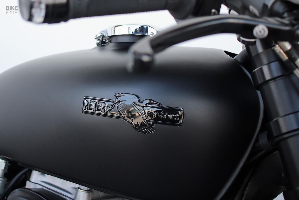 Anche la zona di guida è stata modernizzata: strumentazione Motogadget, comandi e specchietti integrati, clip-on e faro LED LSL, pompa freno Brembo e pedane arretrate Tomaselli. Il telaio è stato snellito e modificato con una nuova coda artigianale in acciaio battuto, luci posteriori e portatarga con frecce a LED su misura. La sella è rifinita in pelle nera e il serbatoio sfoggia loghi Reier Motors stampati in 3D. Molti altri dettagli, come i supporti scarico o i rinforzi del parafango anteriore, rivelano l’attenzione artigianale riservata a questo progetto. Una trasformazione che, pur mantenendo un profilo sobrio, si distingue per qualità costruttiva e soluzioni tecniche raffinate.