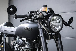 A Salisburgo, in Austria, il laboratorio Reier Motors ha trasformato una Honda CB350 del 1973 in una café racer contemporanea, mantenendo il carattere vintage ma aggiornando radicalmente ciclistica, impianto elettrico e componentistica. La richiesta del cliente era chiara: stile café racer, colorazione nera integrale fatta eccezione per motore e scarichi, e qualche dettaglio “speciale”, lasciato alla libera interpretazione del team guidato da Christian Reier. Per attualizzare la moto, la parte anteriore è stata dotata di una forcella a steli rovesciati Showa e freni a doppio disco Brembo, provenienti da una Ducati 848. Il pacchetto è completato da piastre di sterzo ricavate dal pieno, cerchio Excel e mozzo KTM. Dietro troviamo ammortizzatori Hyperpro abbinati al forcellone di una Honda Dominator, con mozzo posteriore, freno a disco e cerchio Excel della stessa provenienza. Gli pneumatici sono Bridgestone Battlax BT-023 da 17”.