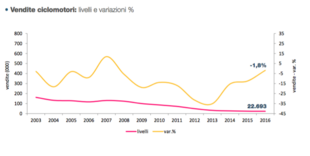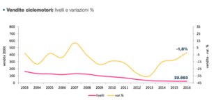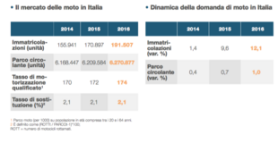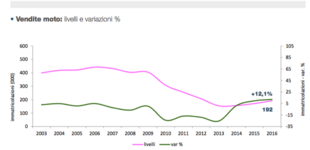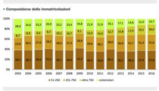Complessivamente dunque, nel 2016 la domanda di moto targate ha ulteriormente accelerato, segnando un +12% dopo il +10% archiviato nel 2015. Da sottolineare, però, anche l’atteggiamento “prudente” dei consumatori da una parte, che negli anni di crisi ha portato a una riduzione del tasso di sostituzione posizionatosi, anche quest’anno, su livelli minimi e l’invecchiamento complessivo del parco moto circolante dall’altra, con un 60% dei veicoli con più di dieci anni di età. A tal proposito, l’Associazione di categoria sottolinea l’elevato costo di mantenimento, inteso, in particolare, come carico fiscale e costo delle assicurazioni.