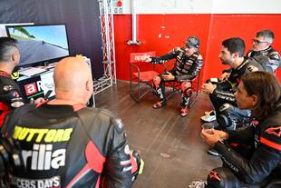 Un corso di guida in pista con la Aprilia RSV4 Factory e un team di istruttori d'eccezione: i piloti MotoGP Marco Bezzecchi e Jorge Martin, il sei volte Campione del Mondo Max Biaggi, Lorenzo Savadori e tutti i piloti Aprilia Racing