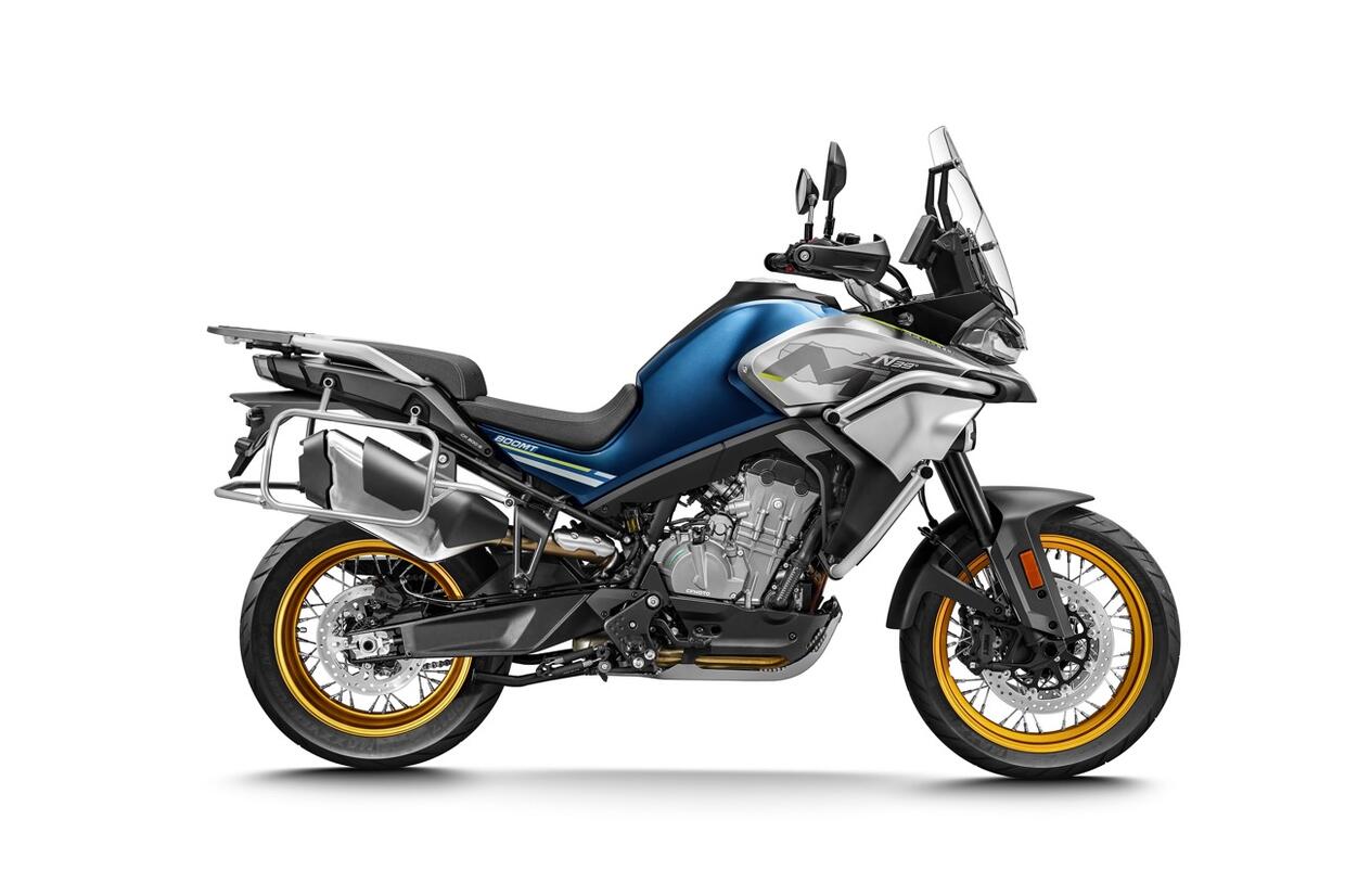 A cavallo tra crossover ed endurona, l’800MT L.E è l'ammiraglia delle CFMoto, adatta anche ai lunghi viaggi e capace di mantenere velocità elevate grazie al bicilindrico frontemarcia di derivazione KTM, potente ma caratterizzato da un'erogazione regolare che non mette mai in difficoltà. Il pacchetto di elettronica include una piattaforma inerziale a sei assi che gestisce due riding mode (Rain e Sport), l’ABS cornering, il cruise control e il cambio elettronico, manca però il controllo di trazione. La dotazione di serie comprende anche sella e manopole riscaldate, paramani e protezione carter motore. La ciclistica utilizza un telaio a doppio trave con forcellone bibraccio in alluminio e sospensioni Kayaba regolabili. La posizione di guida è comoda, mentre il peso si sente in manovra e a bassa velocità. Stabile sul dritto.