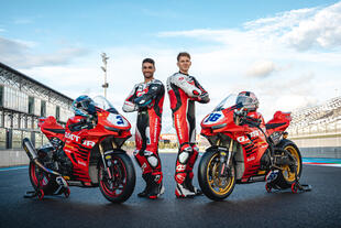 La RS adotta inoltre un perno forcellone regolabile, pensato per consentire la personalizzazione dell’assetto, soluzione riservata esclusivamente alla versione più prestazionale. Differenti anche alcune componenti della ciclistica impiegate nel modello destinato alle gare, come le piastre di sterzo alleggerite e regolabili e un leveraggio posteriore più aggressivo con pull-rod regolabile.