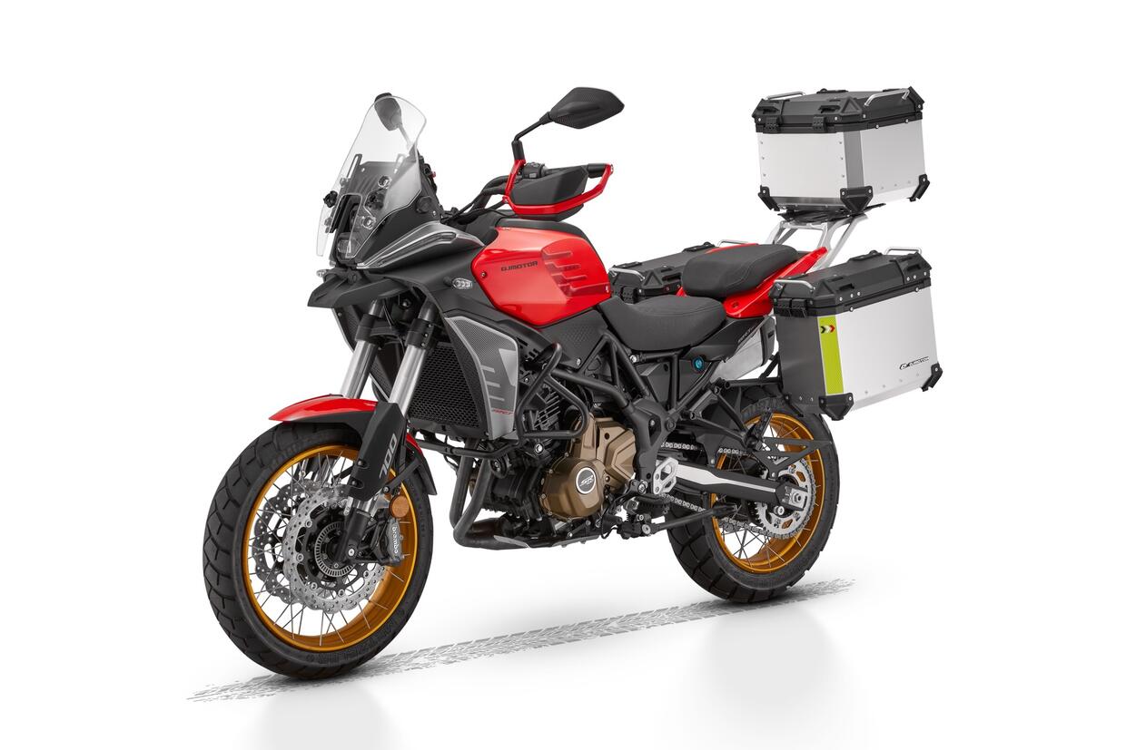 Il telaio in tubi di acciaio e il forcellone in alluminio sono quelli della TRK, ma il monoammortizzatore della SRT 700 SX è regolabile in estensione e precarico della molla (come la forcella) mentre l’impianto frenante sfrutta due dischi da 320 mm con profilo a margherita e pinze radiali all’anteriore e un’unità da 260 mm dietro. Pneumatici: Metzeler Tourance 110/80–19 e Metzeler Tourance 150/70–17. Il tutto per un peso a secco di 227 kg (113 kg asse anteriore, 114 kg asse posteriore),